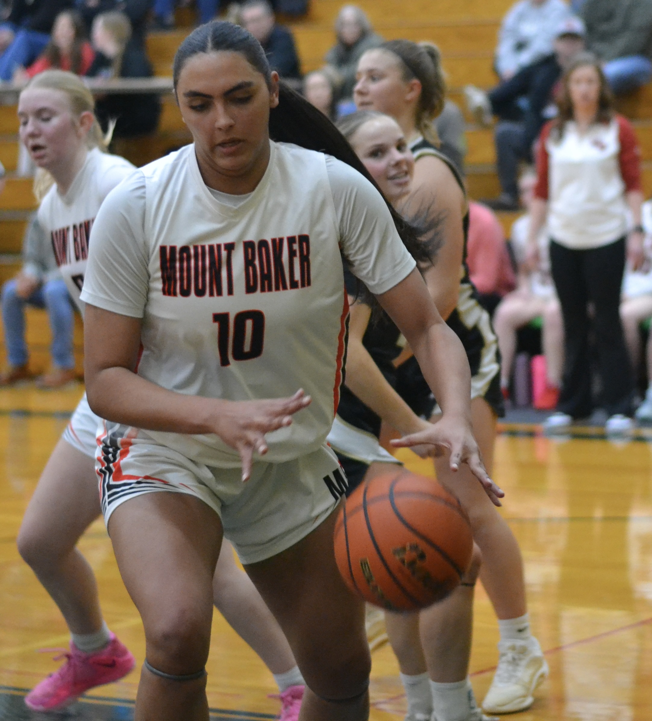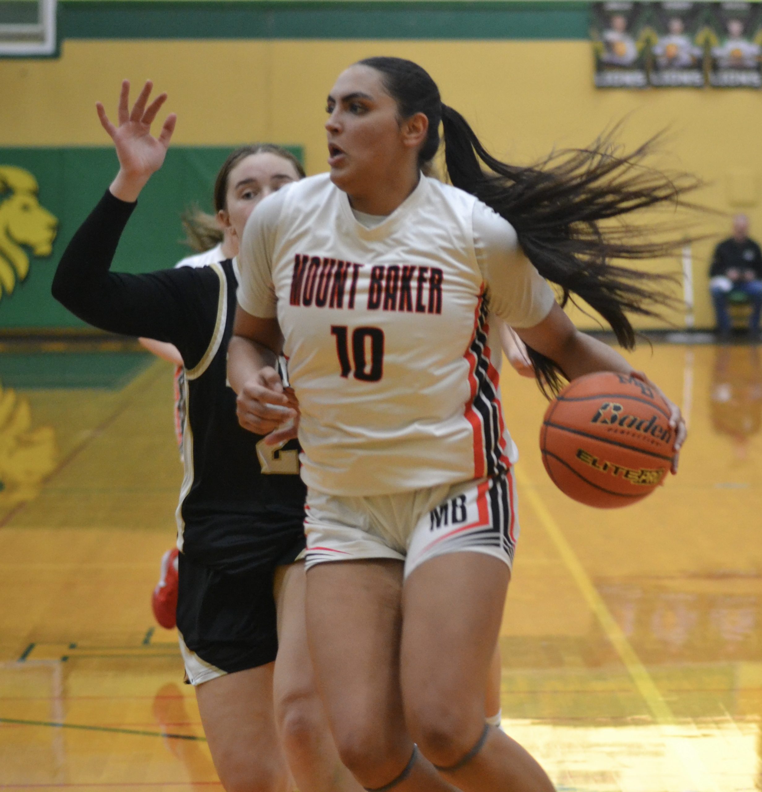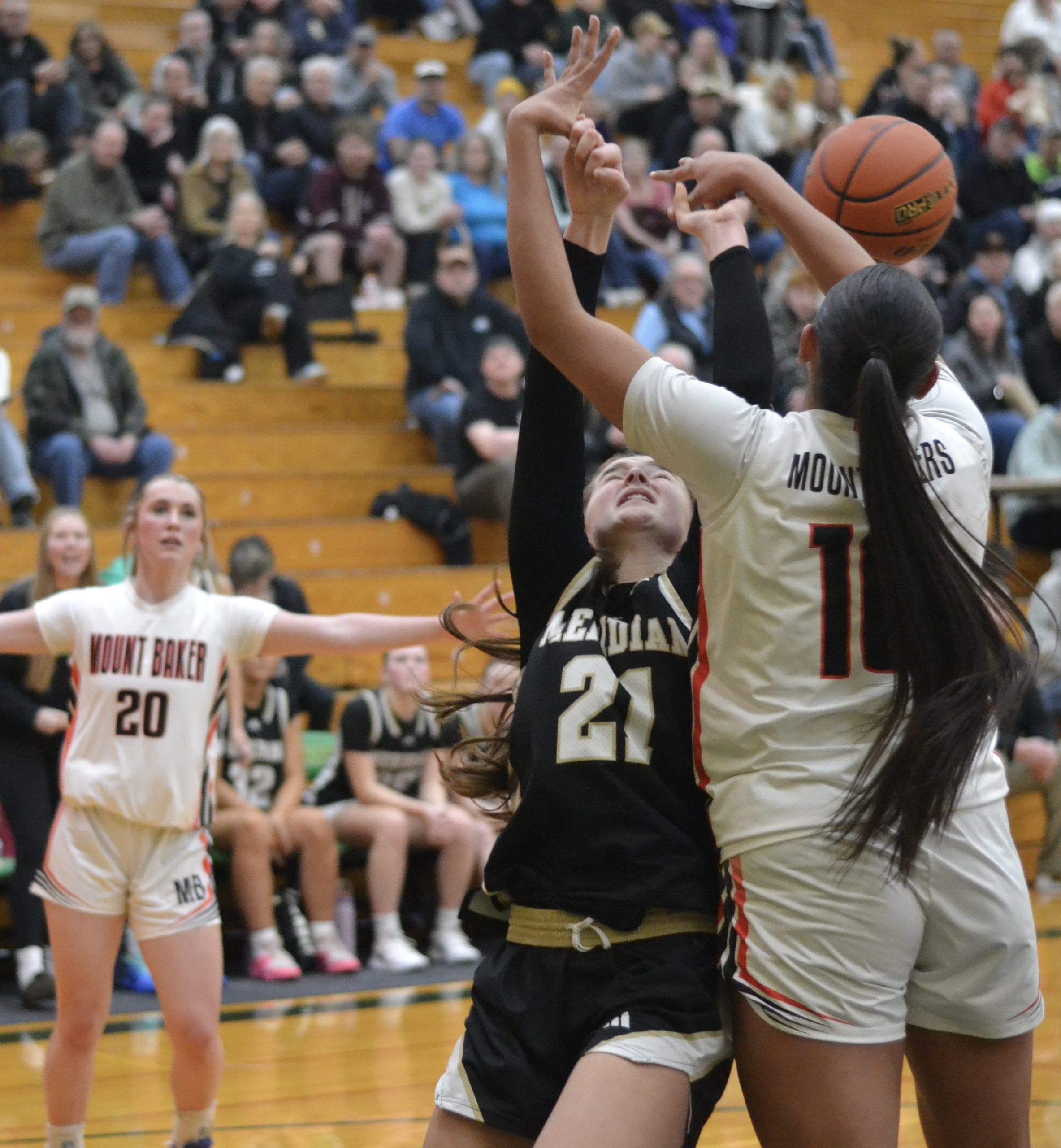 But Mount Baker’s real MVP might have been junior Violet Fox, who had 8 points but more importantly was the ball-handler responsible for negating Meridian ferocious fullcourt, full-game pressure.