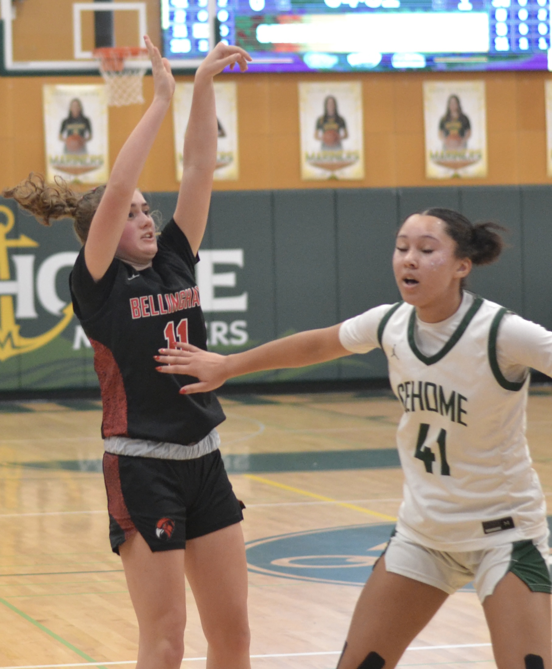 The Sehome girls needed a big third quarter to finally shake off the stubborn Bayhawks, 41-24, in the evening’s first game. The victory raised the Mariners’ overall record to 14-5 and their Northwest Conference mark to 10-3. Bellingham, meanwhile, fell to 9-9 overall and 4-7 in conference play.