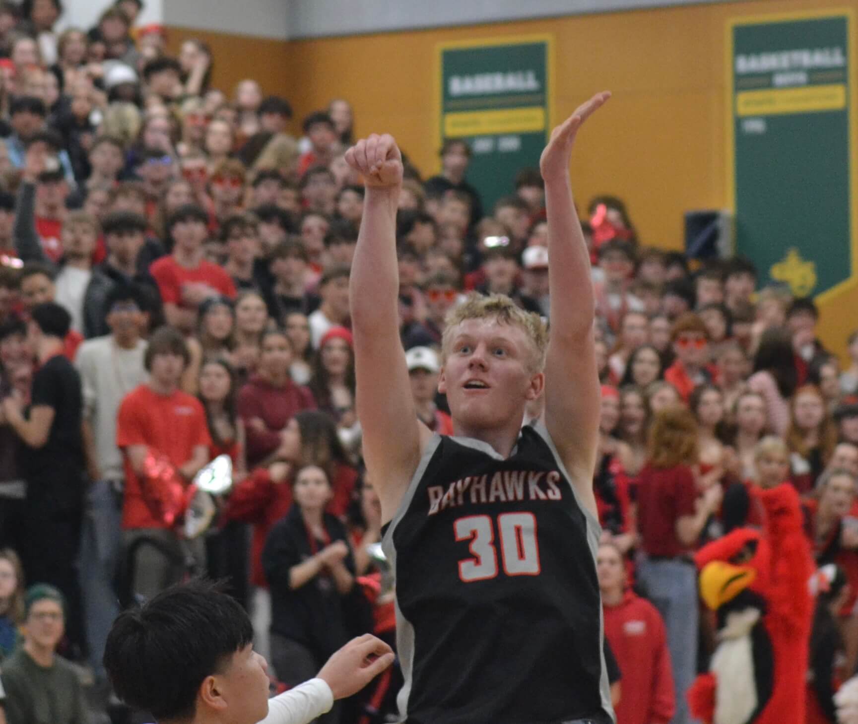 For 29 minutes, the two city rivals battled back and forth, and when Bellingham junior Calvin Van Hofwegen hit a floater in the key with three minutes to go, the score was tied at 55. Unfortunately for the Bayhawks, the last three minutes belonged to the Mariners, who scored the last 10 points in their 65-55 victory.