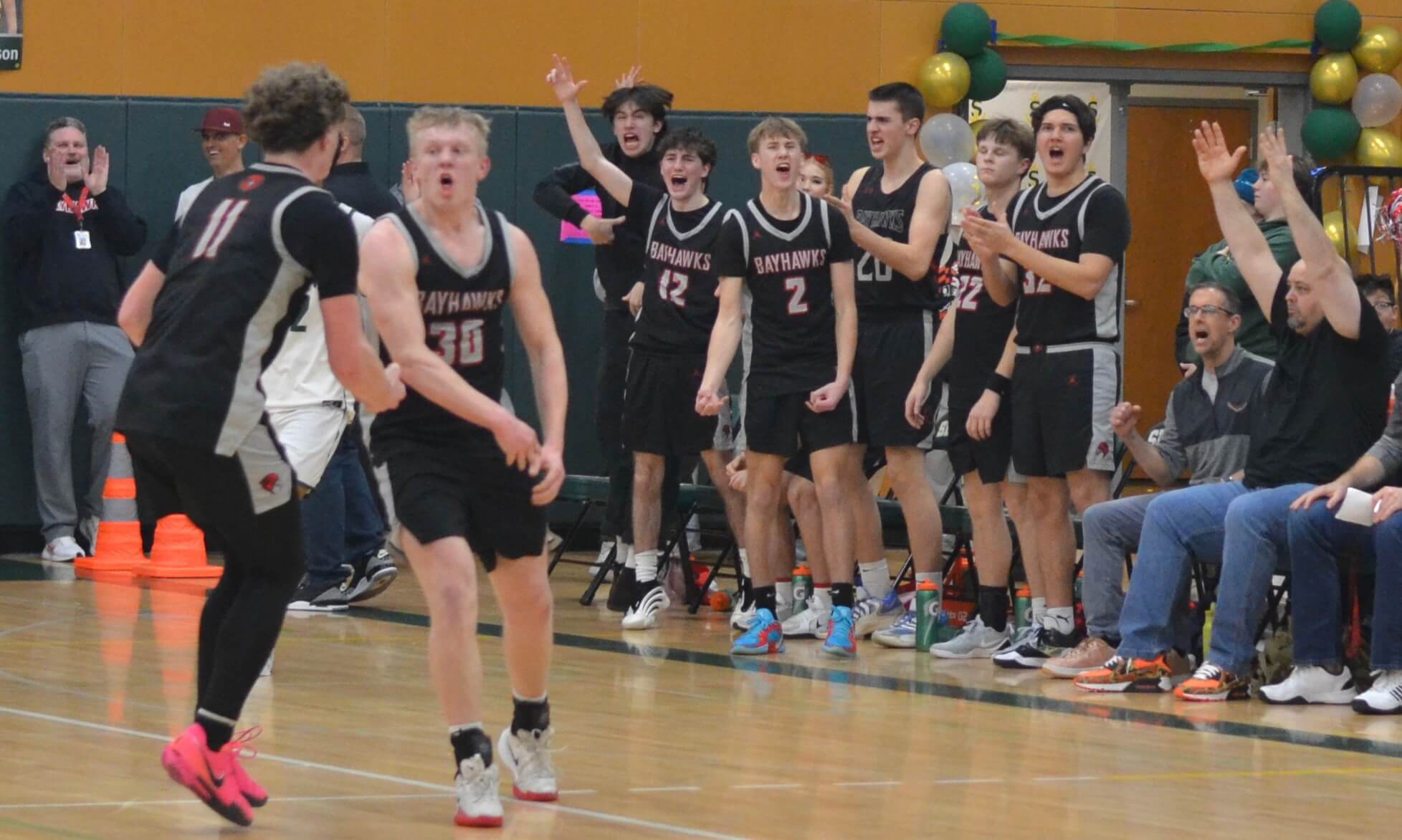 The Mariners got the lead back after senior Xavier Kelley sank a free throw and senior Nolan Wright hit a huge 3-pointer with 2:20 left. But after missing two shots, the Bayhawks were forced to foul in the final minute and seniors Klay Jackson, Carter Duckworth, and Wright sank two free throws each to finish the scoring.