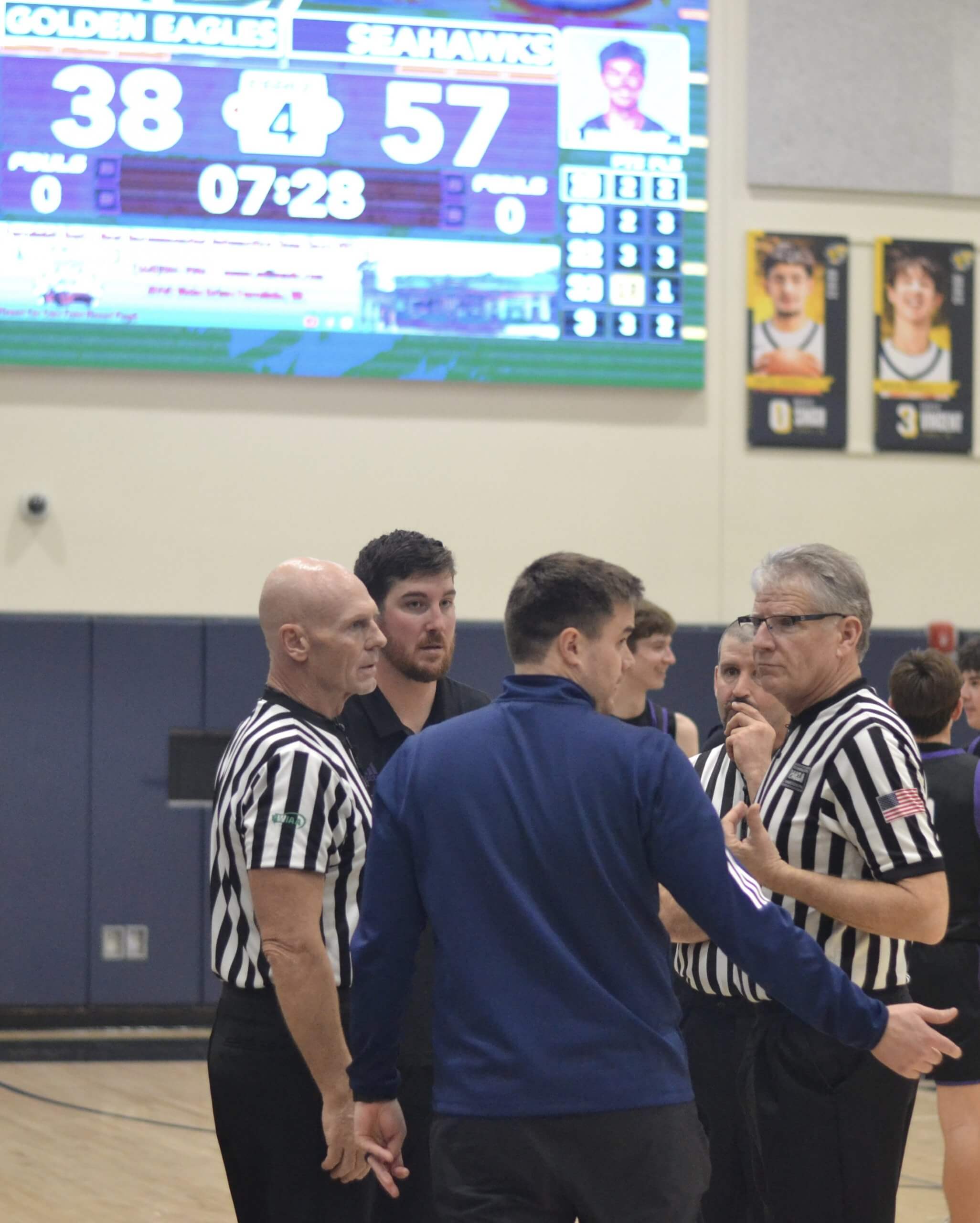 Playing in the tight confines of basically the C team’s home court in front of a limited audience on just one side of the gym — there wasn’t even room for the cheerleaders — the Golden Eagles outscored the Seahawks again in the fourth period, cutting the lead to 11 twice in the waning minutes before coming up short.