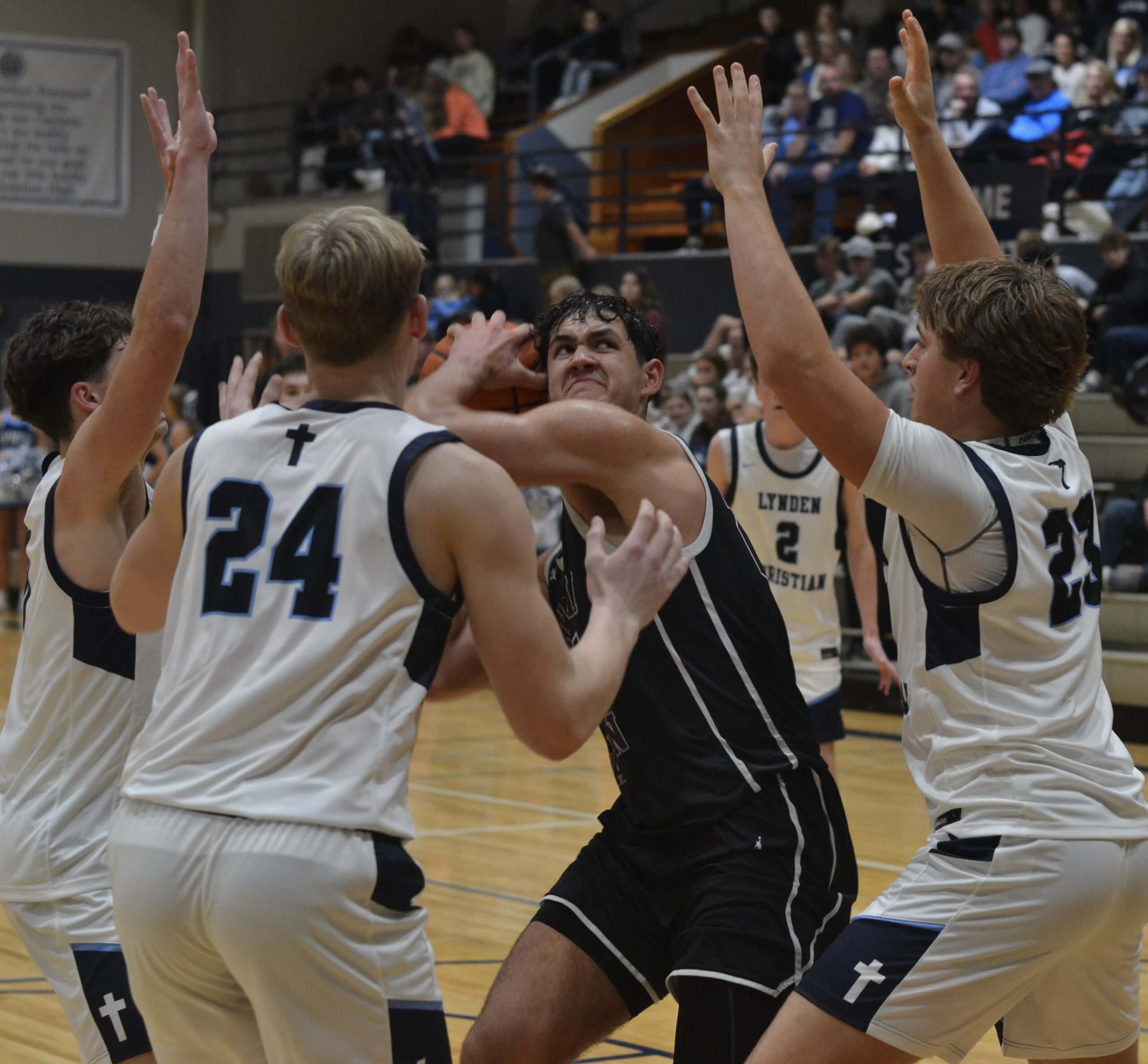 Then the lead bounced back and forth or the game was tied through the rest of the first half, all the way through the third quarter, and through most of the fourth period — until Lynden Christian’s final run.