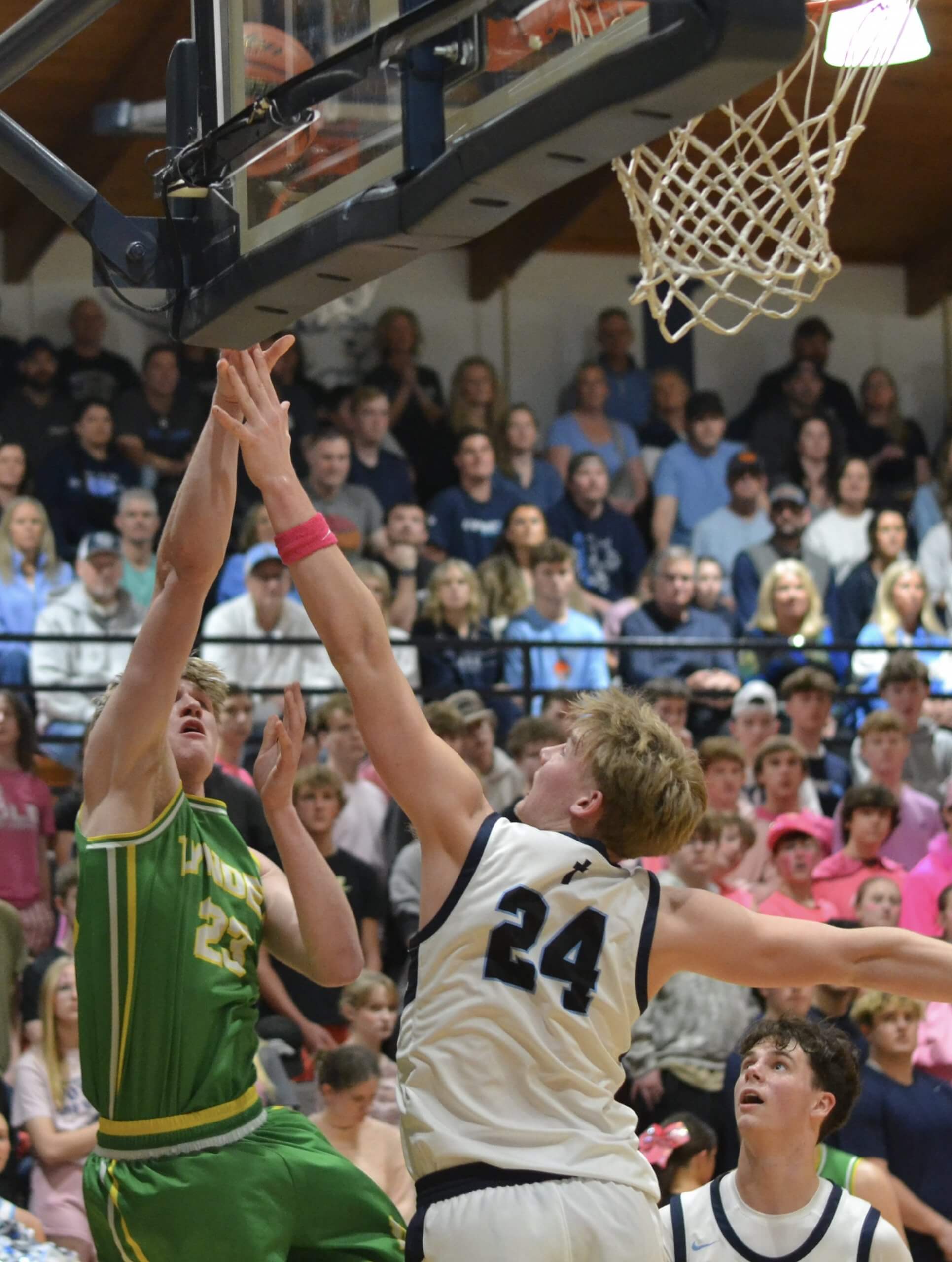 Senior Ty Jorgenson continued his stellar play since returning from a broken leg with 16 points and 4 rebounds; Koenen had 13 points and 4 rebounds; Adams had 9 points despite being the focus of LC’s defense, a game-high 12 rebounds, and a team-high 6 assists; junior Gordy Bedlington had 7 points, 4 rebounds and 3 assists; senior Brody Price had 6 points; and sophomore Jayden Navarre had 3 assists.