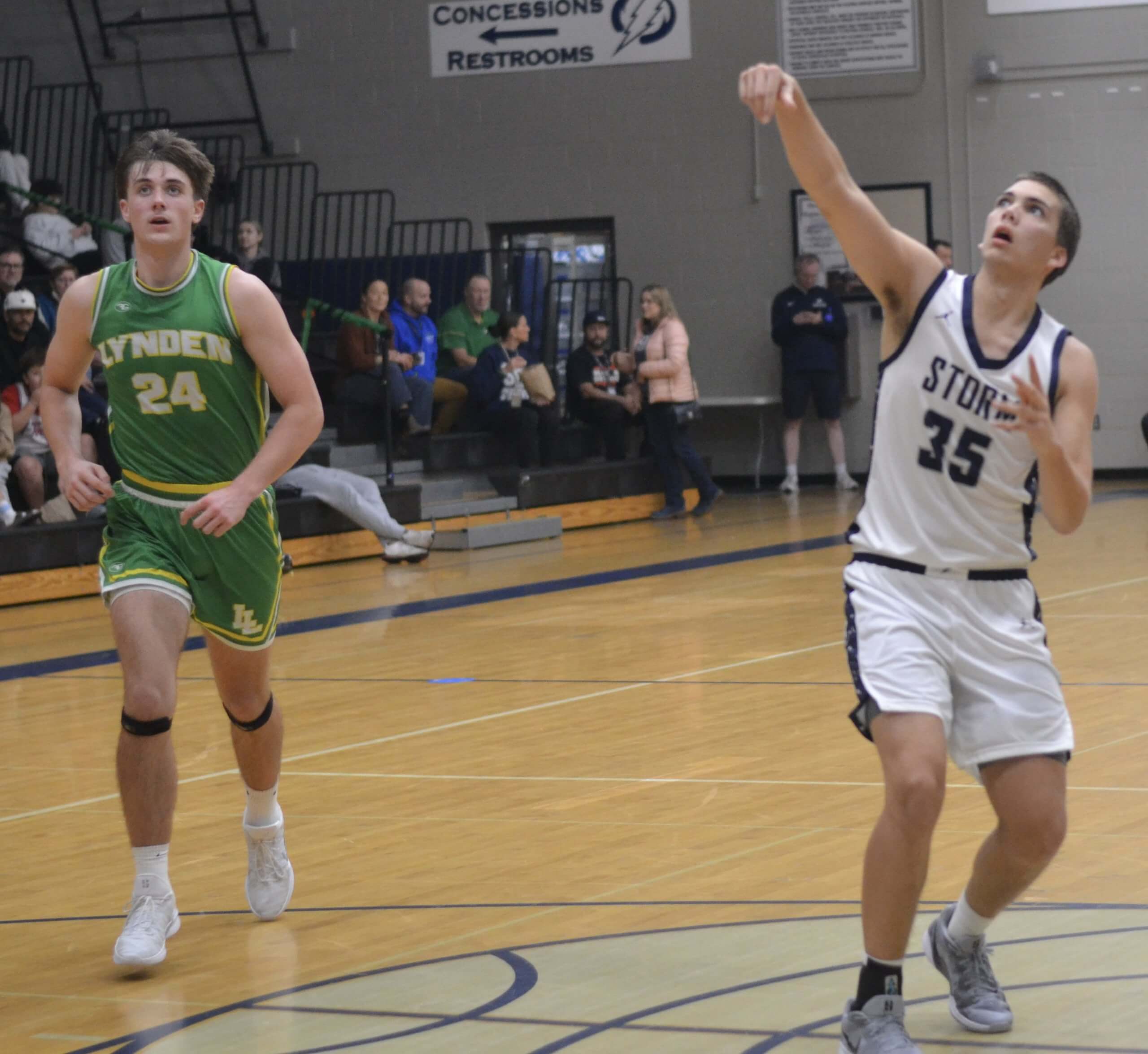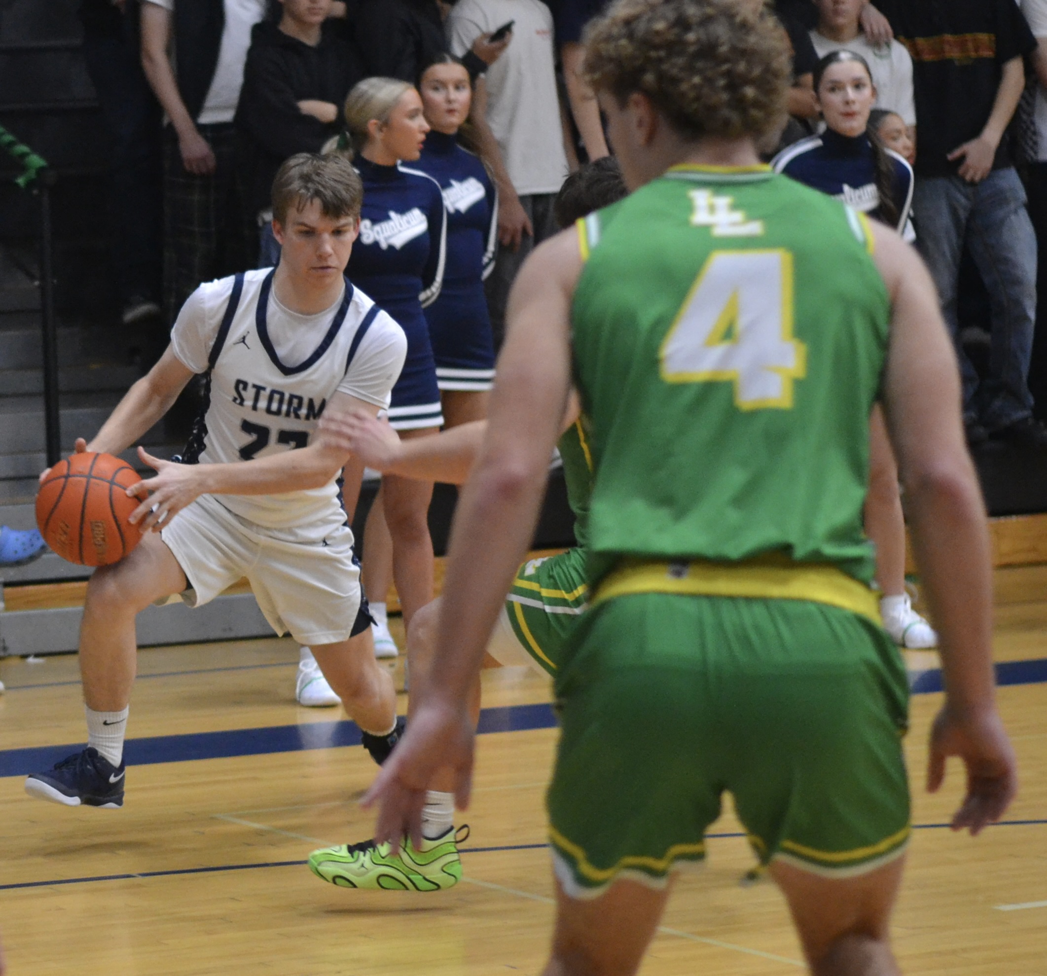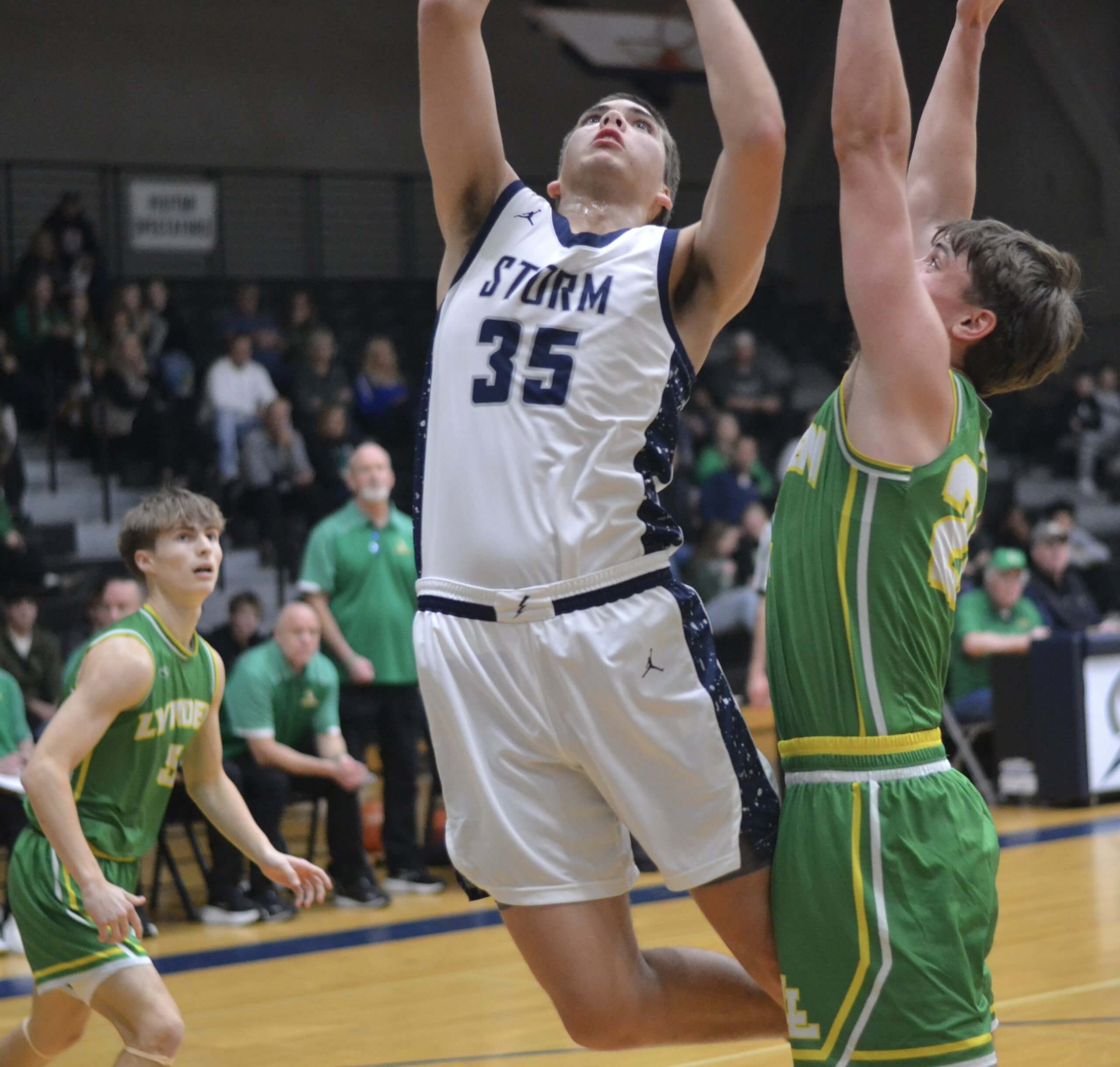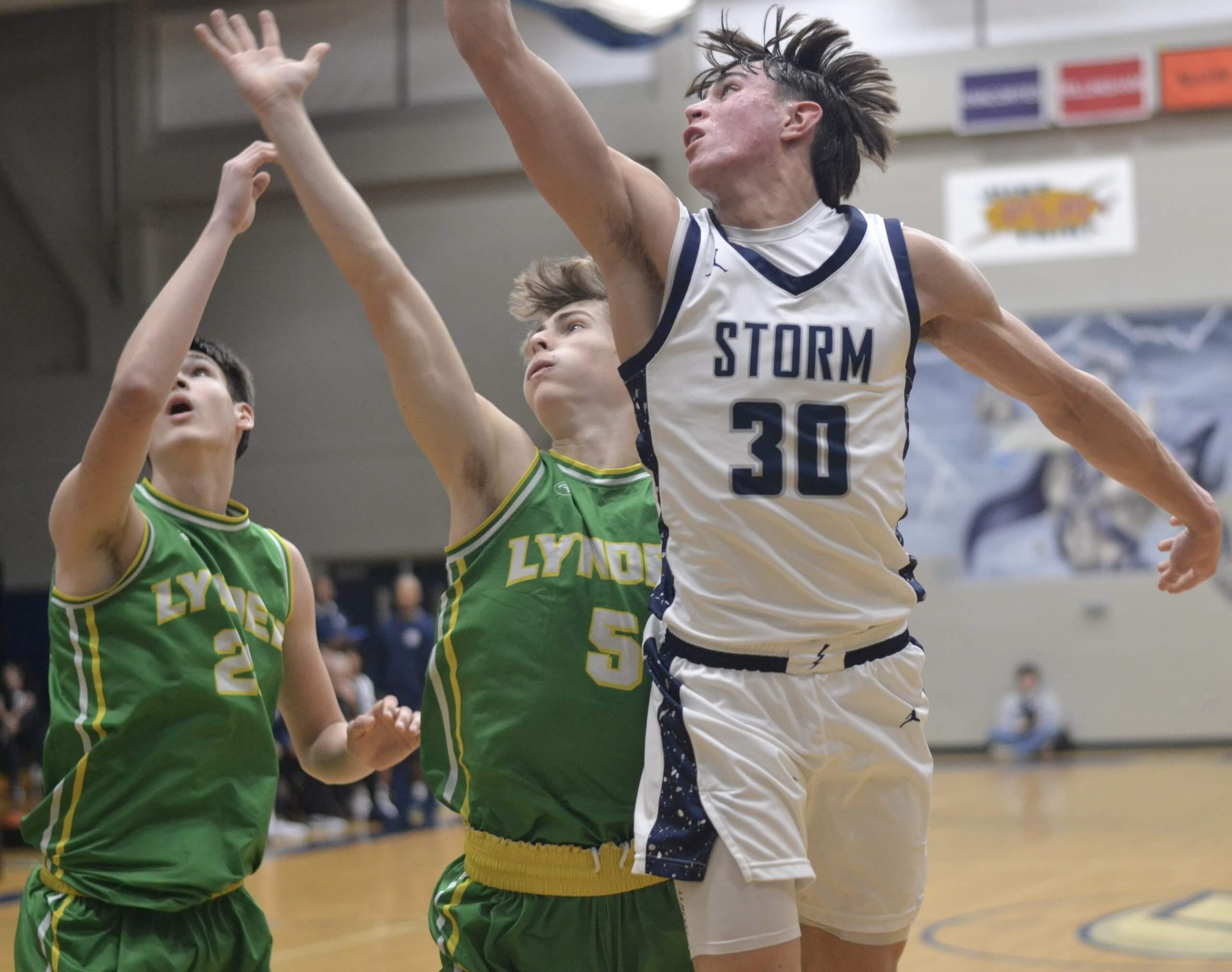 Then the Lions took over. Sophomore Jayden Navarre sank two 3-pointers, senior James Ellis made two layups, and senior Spencer Adams hit a 3-pointer just before the halftime buzzer. When the Storm could only come up with two turnovers and two missed shots, Lynden had completed a 13-0 run and stretched the margin to an insurmountable 21 points.