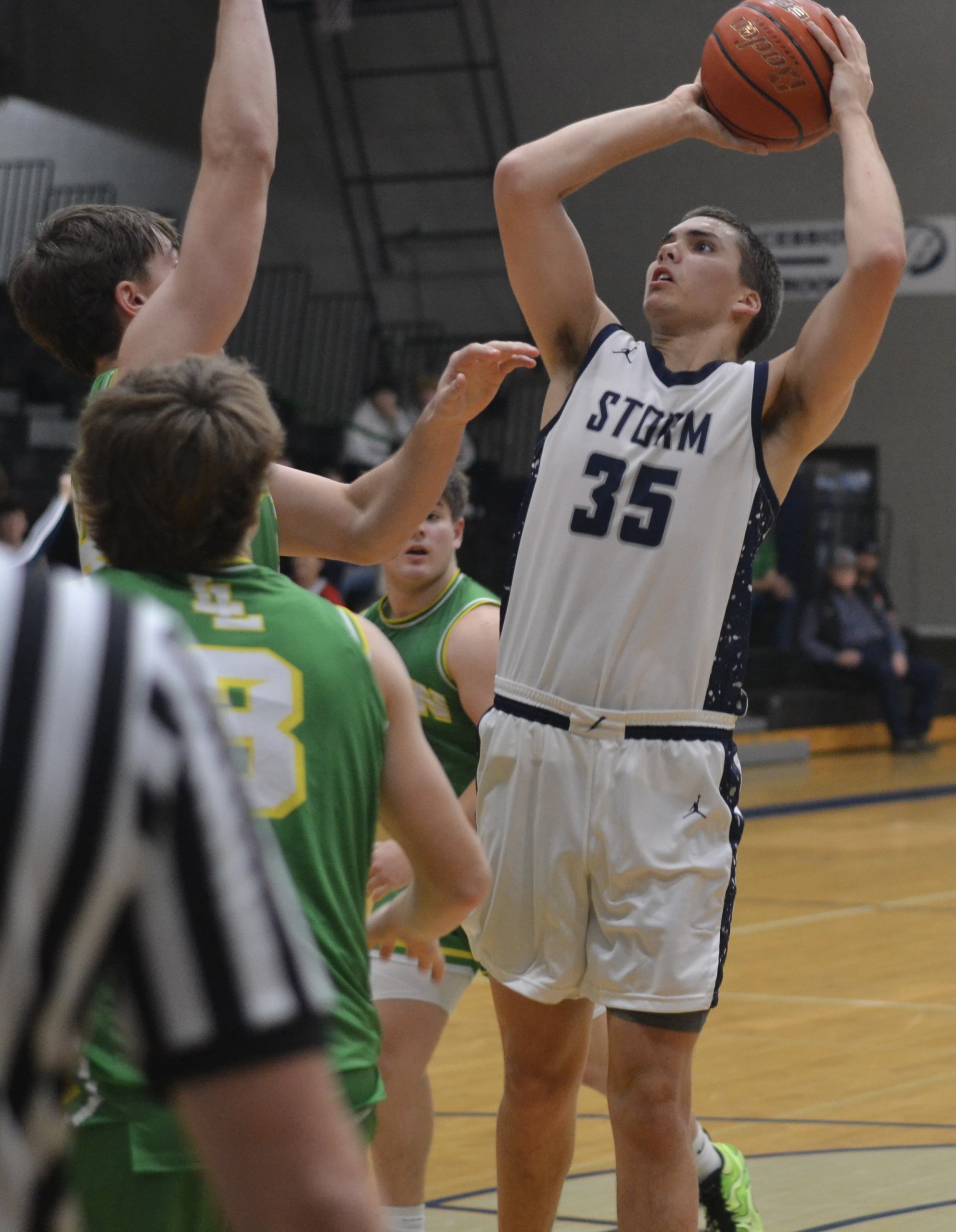 But he was forced to take as many shots (19) as the rest of the team, which only made four field goals. Junior Orion Granberg-Kiddle was the next leading Storm scorer with 4 points.